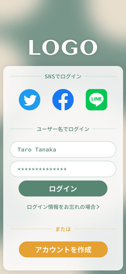今回の場合、例えば「ユーザー名」「パスワード」などの入力フォームが、場合によっては延々と続きがちになりますね。デザイン的な統一感は感じるものの、過度な反復は、同時に入力作業の冗長さを際立たせる役割も買ってしまうのではないか、というのが気付きでした。